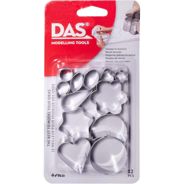 Create clean, precise cuts with this durable set of 12 metal clay cutters - perfect for polymer, air-dry, and ceramic clay. Includes circles, hearts, stars, flowers, moons, petals, and more in various sizes (large, medium, small). Ideal for jewellery, pottery, and sculpting projects. Designed to pair perfectly with DAS clays and tools for pro-quality results every time.