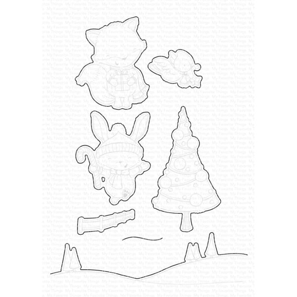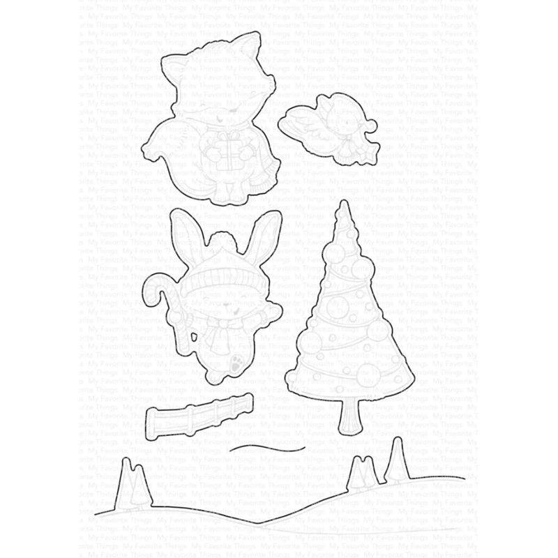 My Favorite Things Die-namics Die - Christmas Cheer - This Die-namics Die coordinates with the SY Christmas Cheer stamp set (sold separately) for perfectly sized die cuts every time. It is open inside to allow you to stamp then cut OR cut then stamp. This feature makes the Die-namics lighter weight and allows for easier removal from the die. Compatible with leading die cutting machines (sold separately). 6 pieces.