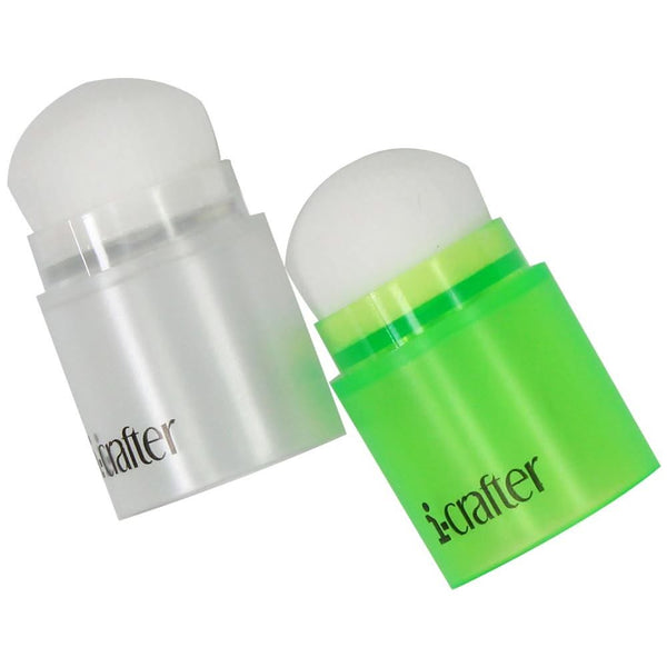 i-crafter i-Brush Blender Brushes 2 pack - Green/Clear - These are brushes so they will hold up under heavy usage. Stack them for convenient storage. Washable, soft bristles that blend inks and paints for beautiful results.