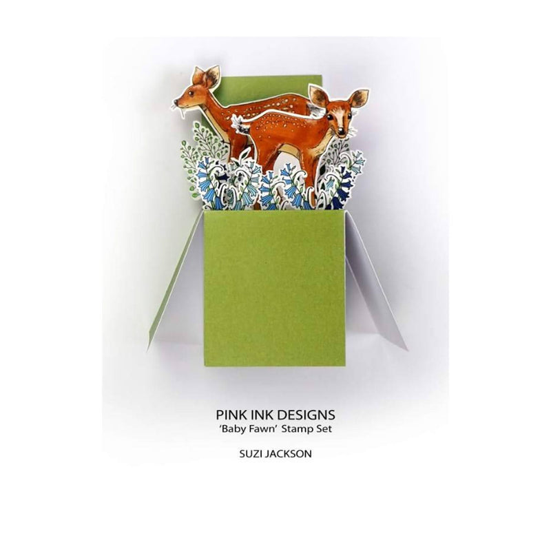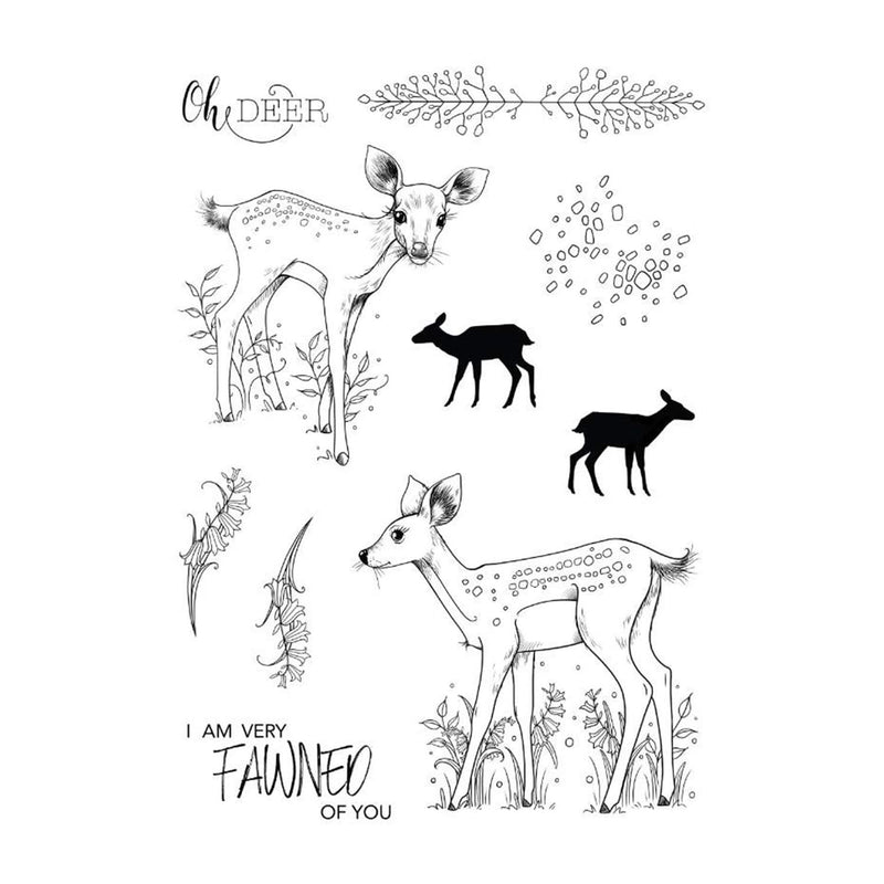 Pink Ink Designs 6"x 8"(15.2cm x 20.3cm) Clear Stamp Set - Fawn - From the Fauna Series, these intricate hand drawn baby fawn stamps are truly unique, with main images and extra elements to create beautiful decorative scenes. These fawns are perfect to use for paper craft and fabric projects. Ready to mount on an acrylic block or stamping tool, the stamps can be used with ink pads, paint, or used with pigment and embossing powder (sold separately). They are suitable for paper, fabric, or any other surface, depending on the ink choice. Store flat away from heat and sunlight. You can also spritz the fabric with water after stamping but before heat sealing to create lovely watercolour background washes. Deep etched, quality photopolymer stamp set of ten stamps. A5 size, 10 stamp set.