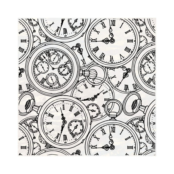 Poppy Crafts Clear Stamps #375 - Vintage Clock Faces. Make a great impression with these Poppy Crafts stamps. Clean, clear, and easy to use! These stamps can be used with all sorts of mediums including paper, card, mdf etc. Ready to mount on an acrylic block the stamps can be used with ink pads, paint, or used with pigment and embossing powder, all sold separately. They are suitable for any other surface depending on the ink choice. Size: 13.5cm x 13.5cm.