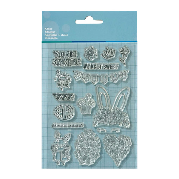 Poppy Crafts Clear Stamps #382 - Some Bunny Loves You. Make a great impression with these Poppy Crafts stamps. Clean, clear, and easy to use! These stamps can be used with all sorts of mediums including paper, card, mdf etc. Ready to mount on an acrylic block the stamps can be used with ink pads, paint, or used with pigment and embossing powder, all sold separately. They are suitable for any other surface depending on the ink choice. Size: 11cm x 16cm.