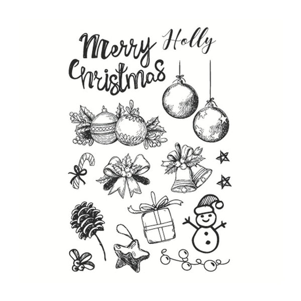 Poppy Crafts Clear Stamps #461 - Christmas Collection - Merry Christmas. Make a great impression with these Poppy Crafts stamps. Clean, clear, and easy to use! These stamps can be used with all sorts of mediums including paper, card, mdf etc. Ready to mount on an acrylic block the stamps can be used with ink pads, paint, or used with pigment and embossing powder, all sold separately. They are suitable for any other surface depending on the ink choice. Size: 11cm x 16cm.