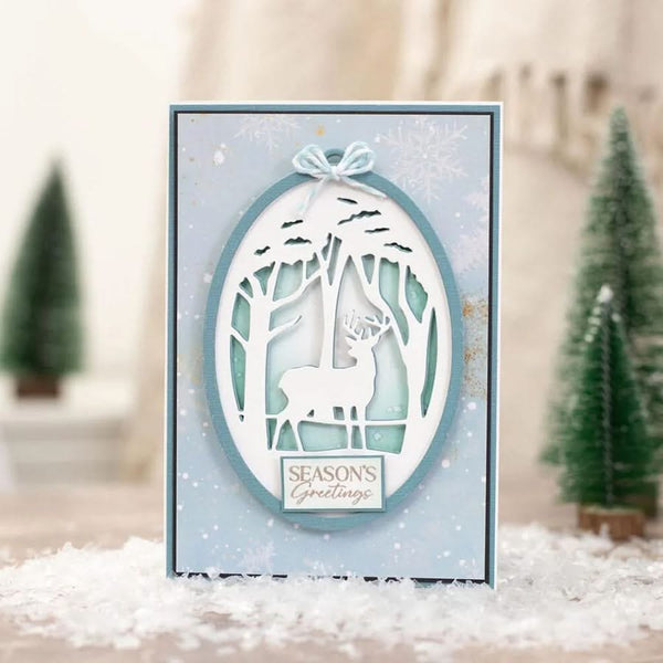 Poppy Crafts Cutting Dies #888 - Christmas Collection - Deer Bauble. Create amazing papercraft projects with this Poppy Crafts cutting die! These are a great idea for all your greeting cards, place cards, scrapbooking and so much more. These Cutting Dies are designed to cut through paper, cardstock and other thin materials and are compatible with most leading die-cutting machines (sold separately). Size: Largest die 9cm x 13cm.