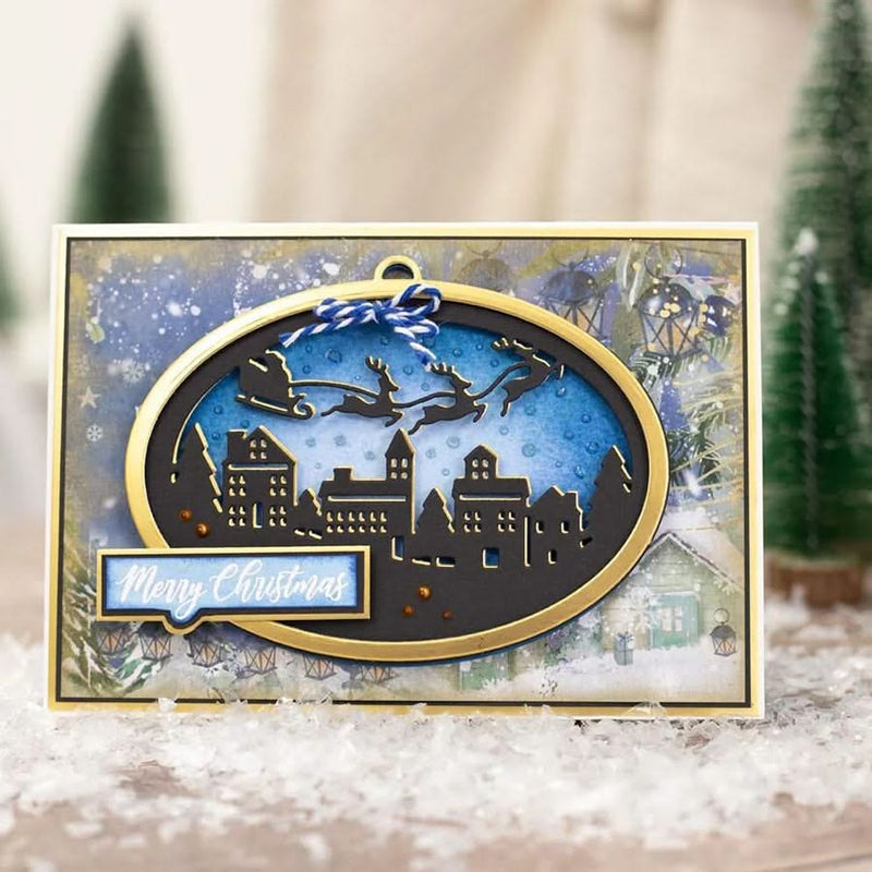 Poppy Crafts Cutting Dies #889 - Christmas Collection - Flying Santa. Create amazing papercraft projects with this Poppy Crafts cutting die! These are a great idea for all your greeting cards, place cards, scrapbooking and so much more. These Cutting Dies are designed to cut through paper, cardstock and other thin materials and are compatible with most leading die-cutting machines (sold separately). Size: Largest die 9cm x 13cm.