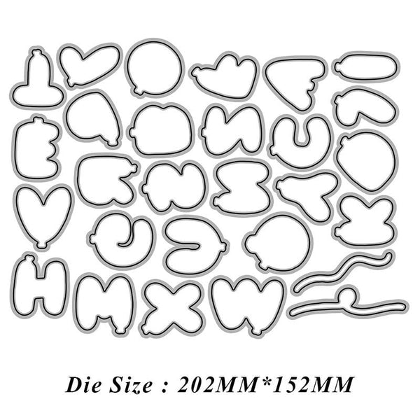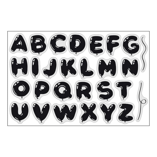 Poppy Crafts Cutting Dies & Stamp Set #104 - Balloon Alphabet. Create amazing papercraft projects with this beautiful stamp & die set! These are a great idea for all your greeting cards, place cards, scrapbooking and so much more. Compatible with most die-cutting machines (sold separately). This set contains 28 stamps with 28 coordinating dies.