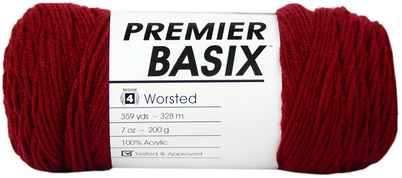 Premier Yarns Basix Yarn - Garnet. A great value for afghans and charity projects. Machine washable and dryable for easy gift giving. Works up perfectly with our Sweet Roll yarn for more project possibilities.
