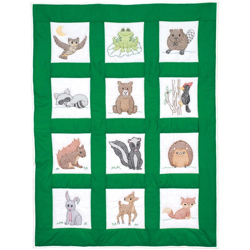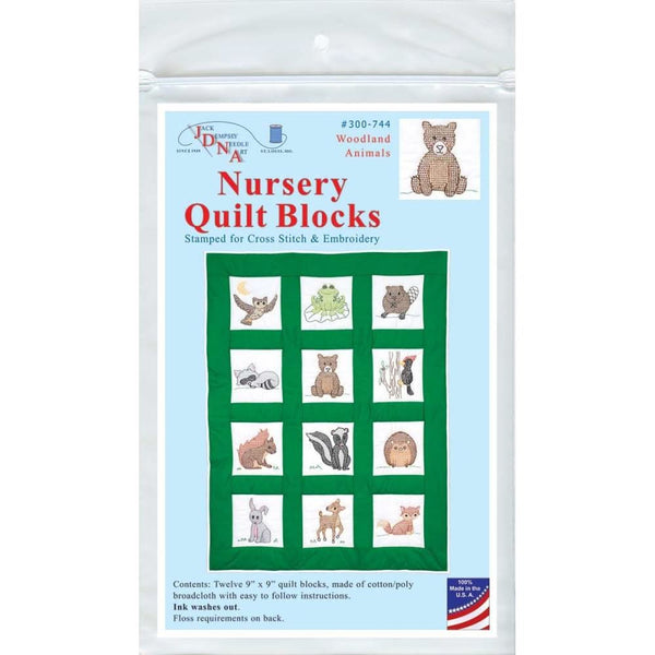 Jack Dempsey Stamped White Nursery Quilt Blocks 9"X9" 12/Pkg Woodland Animals*