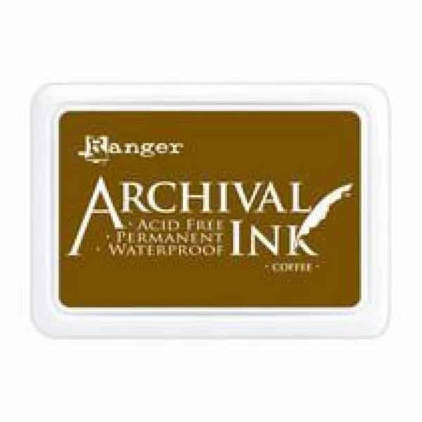 Ranger Archival Ink Pad - Coffee. The ink pads provide lasting results. They will not deteriorate paper or precious photographs, they will not bleed when painted or brayered over with watercolours, water-based inks, markers or pearl pigments. These inks are fade resistant, water resistant, acid free, non-toxic and permanent for paper-heat set for permanence on non-porous surfaces. These pads feature removable hinged lid, raised stamping surface, and measure 2.75x4 inches. This package contains one Ranger Archival Ink Pad #0. Available in a variety of colours, each sold separately. Made in USA.