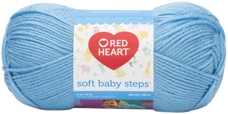 Red Heart Soft Baby Steps Yarn - Baby Blue 142g - Wrap your baby in a soft cloud of love. Red Heart Soft Yarn in fresh, no-dye-lot baby solids and new coordinating smart prints that do all the work for you.