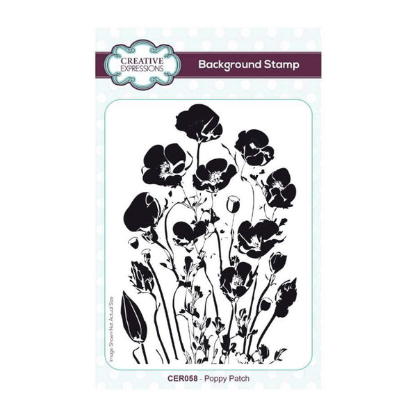 Creative Expressions 4"x 6" Pre-Cut Rubber Stamp - Poppy Patch. Create great backgrounds for your cards and projects easily with this ready-to-use pre-cut mounted rubber stamp. This close-cut rubber stamp will deliver clean, intricate designs on porous and non-porous surfaces when combined with the stamping medium of your choice. These stamps are sized to deliver swift coverage to projects both large and small, making them suitable for cards or larger creations. The stamp can be used for cards, journals, gift-wrapping paper and so much more. High-quality grey rubber stamp. Ready to mount on an acrylic block the stamps can be used with ink pads, paint, or used with pigment and embossing powder, all sold separately. They are suitable for paper fabric, or any other surface depending on the ink choice. Single stamp. Size 4 in x 6 in (10.2 x 15.2).