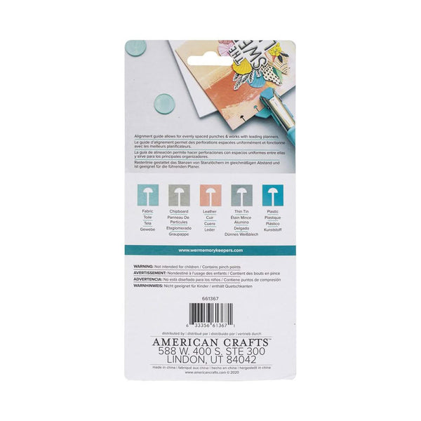 Create the perfect planner with the Disc Power Punch by We R Memory Keepers! This Crop-A-Dile tool really packs a punch through a variety of materials, including cardstock, fabric, chipboard, leather, thin tin, and plastic. That makes it great for journal and planner covers, as well as books and albums. It even features an alignment guide so that you get perfectly spaced punches every time. Pair with pearlescent or gold discs and specialty papers to complete your projects (each sold separately). This package includes 1 Crop-A-Dile Disc Power Punch.