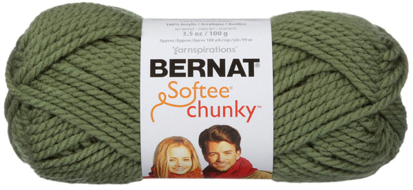 Bernat Softee Chunky Yarn - Forest 100g - A robust, full, round yarn that knits and crochets smoothly on needles and hooks. Excellent stitch definition for a heavier gauge yarn. It is an easy-care and long-wearing premium ultra-soft acrylic yarn with no dye-lot; perfect for afghans, sweaters, coats and much more.