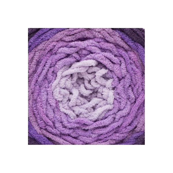 Bernat - Blanket Ombre Yarn - Eggplant Ombre - Make a bold statement with Bernat - Blanket Ombres. The same cozy, chenille-style Bernat - Blanket now in eye-catching graduated shades to create beautiful multi-tonal home decor projects.