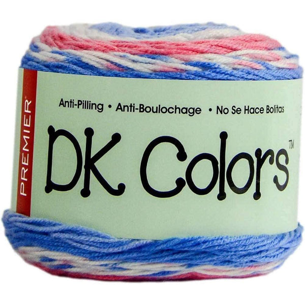 Premier Yarns Anti-Pilling DK Colours Yarn - Picnic - Premier Yarns DK colours are specially designed to create broad stripes of colour as you knit or crochet. With five carefully coordinated colours in each ball, even simple stitch work will produce an eye-catching result. DK colours is made with the same exclusive anti-pilling acrylic fibre that has made our Everyday collection a customer favourite for years. For coordinating solid colours, look for Everyday Baby. Weight category: 3. Content: 100% Anitpilling acrylic. Putup: 5oz/140g, 383yd/350m. Gauge: 22stsx 28r = 4in/10cm on size US6/4mm knitting needles. Suggested crochet hook size USG/4mm. Dyelotted: we try but are not always able to match dye lots. Care: Machine wash warm, tumble dry no heat. Do not iron. Comes in a variety of colours. Each sold separately.