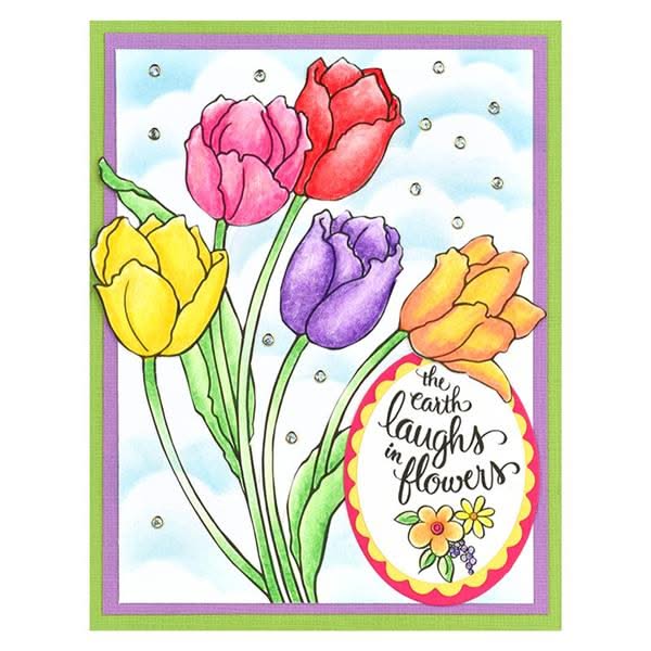 Stampendous Cling Stamp 2"x 2.5" - The Earth Laughs in Flowers. Premium quality precision-trimmed rubber stamps that give you a beautiful image every time! Use with any acrylic block (sold separately). Simply remove the disposable acetate layer revealing the vinyl cling with the printed image, press onto a block, align and stamp! Use any ink that can be used with traditional wood-mounted stamps and clean with wood-mounted stamp cleaner. Size: 2"x 2.5" (4cm x 6cm).