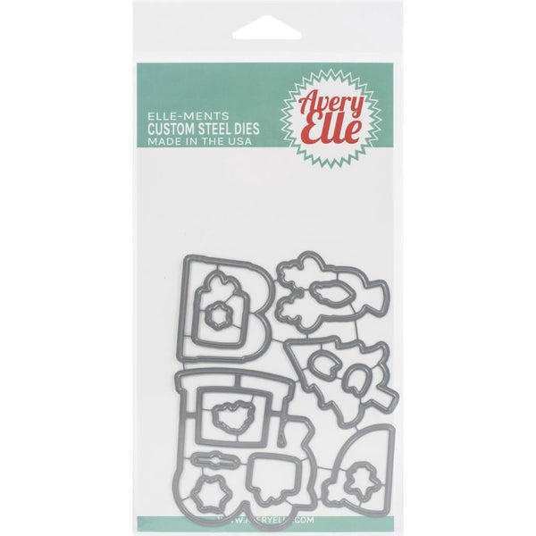 Avery Elle Elle-Ments Dies - Peek-A-Boo Christmas Train - Create amazing paper projects using any of the beautiful die cut designs Avery Elle has to offer! The dies cut paper, felt, fabric, cork, magnetic sheets and more and can be used in most leading die-cutting machines (sold separately). This package contains Peek-A-Boo Christmas Train: a set of 16 metal dies measuring between .375x.375 inches and 2.25x2.5 inches. These dies coordinate with Peek-A-Boo Christmas Train stamps (AE2030), sold separately.