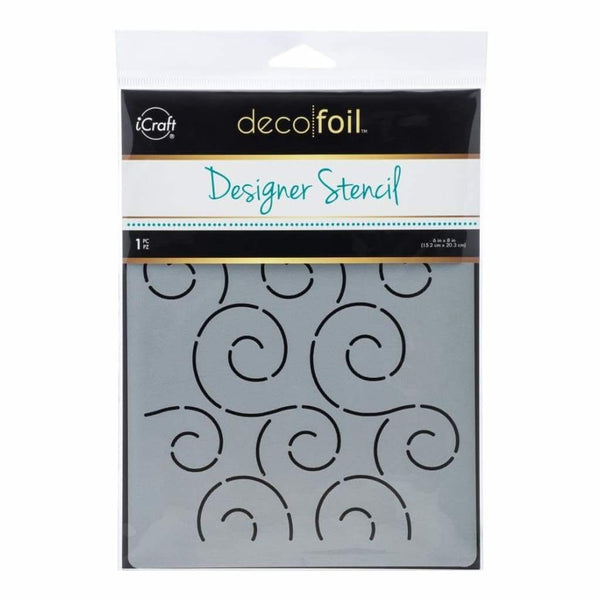 Deco Foil Designer Stencil 6"x8" - Swirls. Contains one 6"x8" (15cm x 20cm) stencil that is designed to work with Deco Foil adhesives and applications to add a vibrant metallic finish to cards, layouts, mixed media, home decor, holiday decorations and so much more! Can be used with ultra-fine glitter, ink sprays, texture paste, chalk, markers, acrylic paint and other colour mediums.