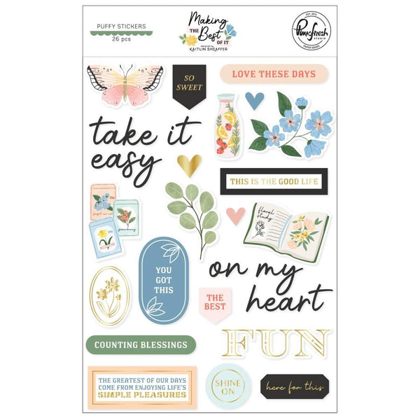 Pinkfresh Studio Puffy Stickers 5'X7" Making The Best Of It - This sheet includes 26 stickers.