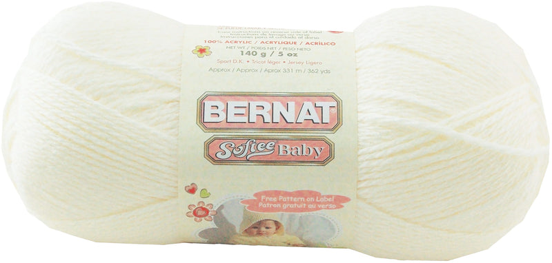 Bernat Softee Baby Yarn - Antique White 140g - Softee Baby yarn is a classic, light weight baby yarn, perfect for knit and crochet baby garments, accessories, and home décor. Available in a range of traditional baby shades, including solids and ombres. Bernat Baby yarns are Oeko-tex certified, and are tested for over 300 harmful substances and proven to be safe for your baby's sensitive skin. Conveniently machine washable and dryable for easy care.