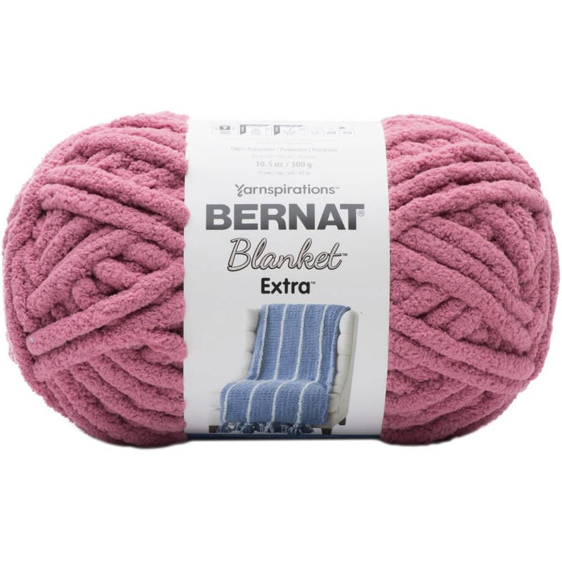 Bernat Blanket Extra Yarn - Burnt Rose 300g. The chenille-style yarn you love is now thicker and quicker! Create blankets, baskets, pillows and more with the fast-stitching Bernat Blanket Extra!