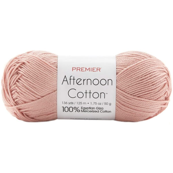 Premier Yarns Afternoon Cotton Yarn - Light Peach 50g - Just in time for Spring, Premier Afternoon Cotton brings sheen and lustre to your warm weather projects. Made with 100% Egyptian Giza Mercerised Cotton, this yarn is stronger, produces less lint, and is more resistant to mildew. Perfect for garments and home decor, this yarn is less likely to shrink or lose its shape.