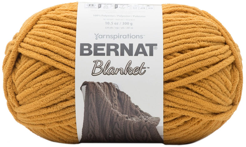 Bernat Blanket Big Ball Yarn - Burnt Mustard 300g - A luxurious, soft and cozy yarn, Bernat Blanket is a chenille-style yarn that’s perfect for home décor projects. From blankets, to crochet baskets, Blanket is ideal for a wide range of projects. Its super bulky weight stitches up quickly, making it a great choice for afghans and blankets. Available in a wide range of solid and variegate shades to compliment your home décor. Economical big ball size for larger projects. Conveniently machine washable and dryable.