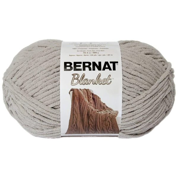 Bernat Blanket Big Ball Yarn - Pale Grey 300g - This super bulky weight yarn is perfect for all your home decor knitting and crocheting projects! Weight category: 6. Content: 100% polyester. Putup: 10.5oz/300g, 220yd/234m. Gauge: 8sx13r = 4in/10cm on size US11/8mm knitting needles, 7scx8r = 4in/10cm on size L11/8mm crochet hook. Dyelotted: we try but are not always able to match dyelots. Care: machine wash, dry low, do not bleach, do not iron do not dry clean. Comes in a variety of colours. Each sold separately.