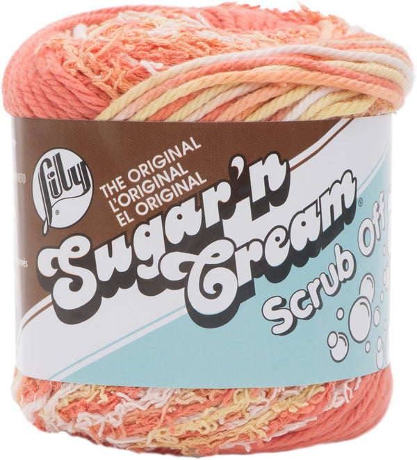 Lily Sugar'n Cream Cotton Yarn - Scrub Off - Papaya 75g - Combining the best of Lily Sugar'n Cream absorbent cotton with a scouring section perfect for the tougher messes, Scrub Off creates a multi-textured design for a cleaner kitchen.