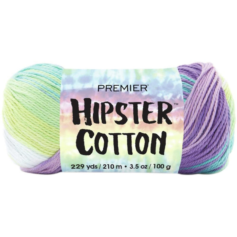 Premier Yarns Hipster Cotton Yarn - Summer Splash 100g - This DK weight, 100% cotton yarn features bright and bold stripes, reminiscent of tie-dye. Hipster Cotton is great for creating fun and colourful garments and accessories for all ages. Use it for standalone summer garments or winter layering pieces; either way, it will add some lively colour to your wardrobe!