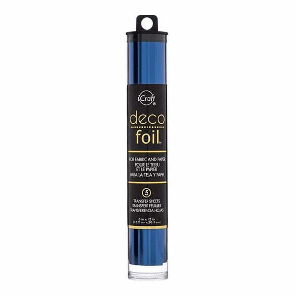 Deco Foil Transfer Sheets 6"x12" - 5 pack - Deep Blue. Create dimensional Deco Foil art on fabric, paper, wood and other porous surfaces. This package contains five 6"x12" (15cm x 30cm) Deco Foil sheets. Comes in a variety of colours.