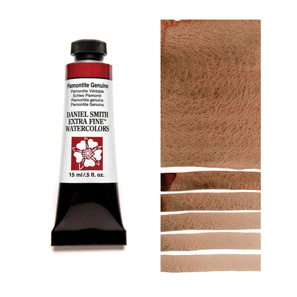 Piemontite Genuine is a deep amethyst colour in masstone and is produced from piemontite found in the hills of Italy. When mixed with water a carmine tone with violet-brown granulation is produced. This product is perfect for adding interest to shadows or painting the mottled surfaces of autumn leaves. Series 4