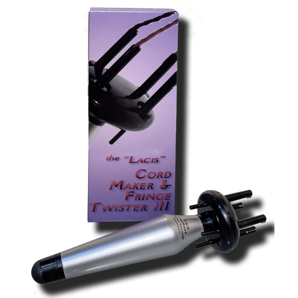 Lacis Cord Maker & Fringe Twister III Makes 2-4 Ply Cords - Create 2- 4 ply decorative cords, tassels, ties, fashion trimmings and jewellery, as well as twisted fringe for warp ends and tassels with the touch of a button. The Cordmaker III incorporates a fixed spinning head with fixed pins. Requires two (2) AA batteries, batteries not included.