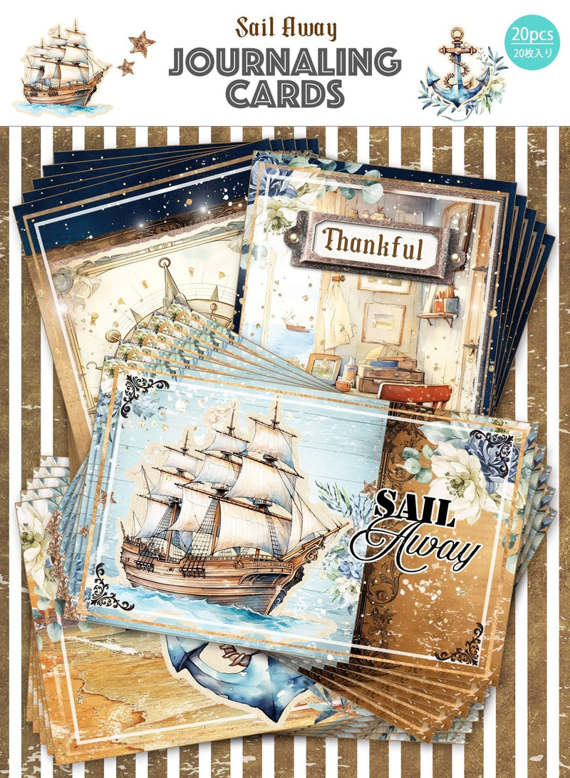 Memory Place Journal Card Pack 20/Pkg Sail Away - Journal Card20pcs of double sided journaling cards (4 designs, 5pcs each) Approx. 2.1 x 3.5 / 5.5cm - 9.1cm)