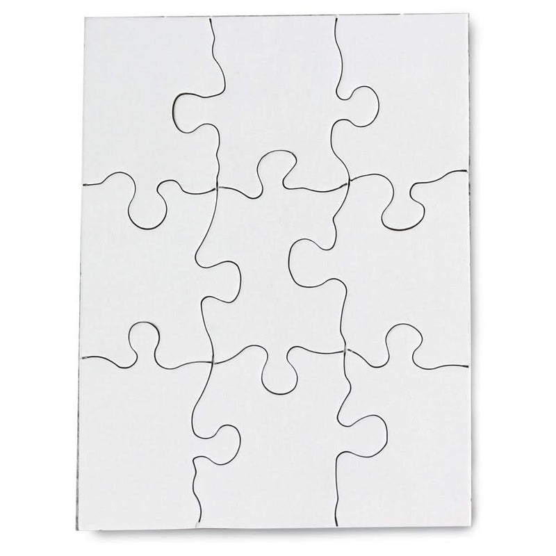 Hygloss Compoz-A-Puzzle Blank Jigsaw Puzzle 4"X5.5" 24/Pkg 9 Pieces - These pre-assembled jigsaw puzzles are blank and ready for decorating: they can be hand-drawn, rubber stamped, stenciled, airbrushed, painted or screenprinted. These puzzles are great for mail art, classroom projects, party invitations, letter writing, handmade greeting cards and more! 24 puzzles per package.