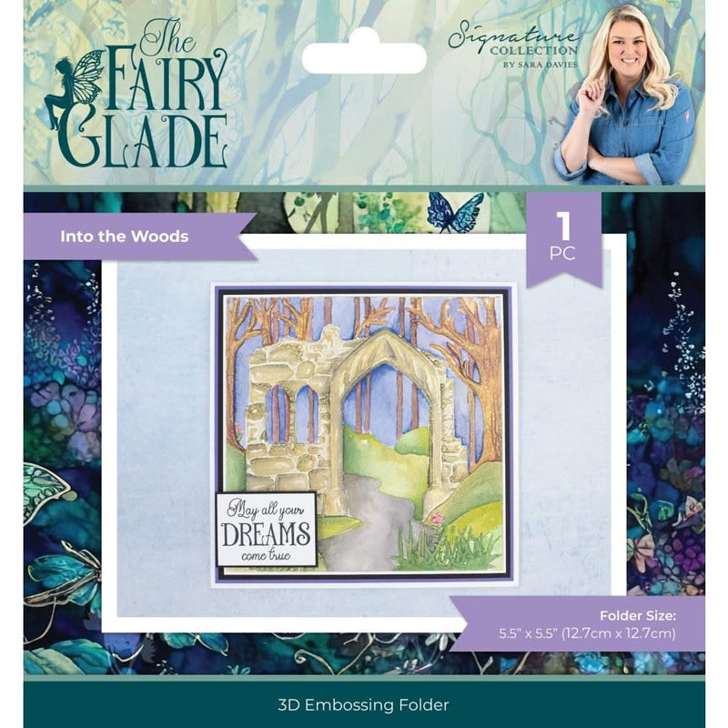 Sara Signature Fairy Glade 3D Embossing Folder 5"X5" Into The Woods - Introducing the new Sara Signature - Fairy Glade collection! This collection embraces the darker tones associated with the fairy world. Including fairy silhouette stamps, forests and the clouds. It is nothing like the fairies we have done before. With a selection of glitter, charms and gems/pearls to accompany this collection, it has everything you need to create any fairy fantasy inspired card. With a range of stamps, dies, stencils and embossing folders, there is something for everyone! This package contains 5x5 3D embossing folder.