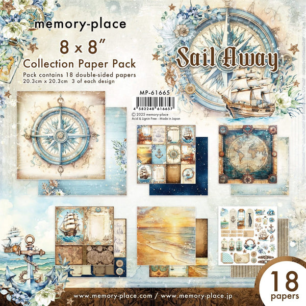 Memory Place Double-Sided Collection Pack 8"X8" Sail Away - 8x8 Collection Paper Pack18 sheets of 8x8 (20.3cm x 20.3cm) 80lbs double sided papers (6 designs, 3 sheets each)