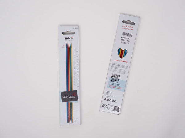 Colourful as a colibri, these are probably the lightest double pointed needles in the world. Each with a lace tip and a basic tip – for all yarns. The wonderful colours make knitting fun. Information on size and length can be found on every needle.