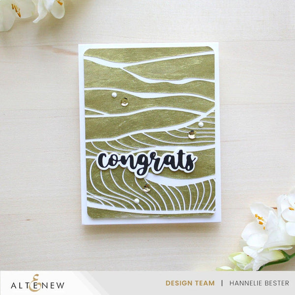 Crafted for versatility, the Brilliant Waves Background Stencil works seamlessly with Altenew’s Crisp Dye Inks, Fresh Dye Inks, and even spray inks. For textured effects, pair it with mediums such as Embossing Paste or Shimmer Relief Paste to add stunning raised details. Whether you’re blending, spraying, or applying paste, this wave stencil delivers flawless, effortless results every time.