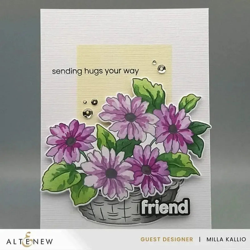 Colour your blooms effortlessly with the coordinating layering stencil set, which includes 4 stencils for the flowers and 1 stencil for the basket. Complete your kit with the matching die set to cut out every stamped and stencilled detail with precision. Whether you're making handmade cards, journal pages, or scrapbook layouts, this all-in-one floral set makes it easy to build bright, dimensional garden scenes in minutes.