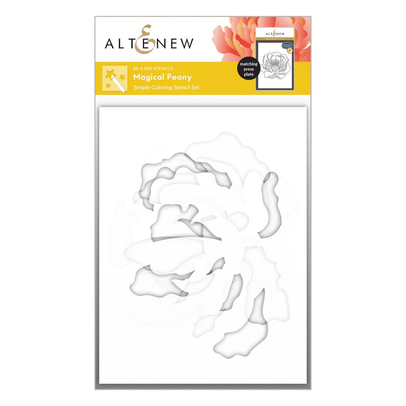 Designed to cover most of your card base, the press plate features a beautifully detailed peony with intricate linework, capturing the elegance and charm of this classic bloom. The 4-in-1 simple colouring stencil set will help you add colours to the peony image easily. The Magical Peony Stencil Set can be used on its own or with the coordinating Magical Peony press plate (ALT10877), sold separately. The set includes four 4.5"x 6" (11.4cm x 15cm) stencils.