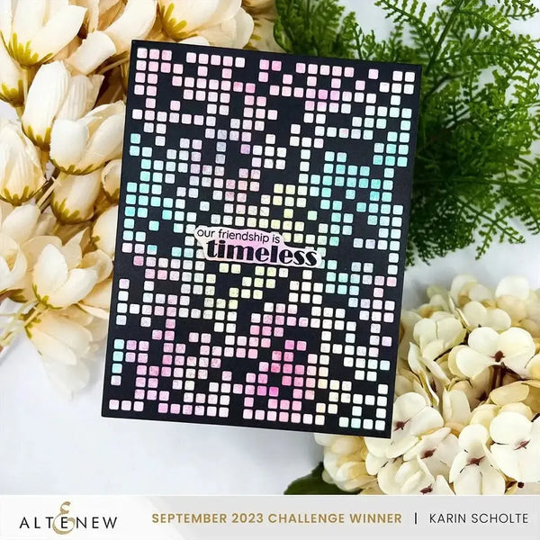 Altenew PixelGrid Cover Die. Dive into the world of contemporary pixel art with our PixelGrid Cover Die. Create a playful and trendy grid background and give your projects a modern flair with this dynamic 4.25" x 5.5" cover die. Great for gender-neutral cards, scrapbook pages, and other DIY paper crafts. Compatible with most die-cutting machines (sold separately). There is 1 die in this set. Die Dimensions: 4.25" x 5.5"