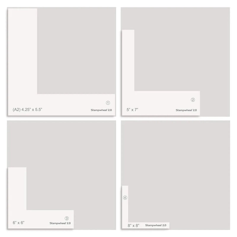 Place the guide in one corner of the Stampwheel® 2.0 on the Sticky Mat, making sure that the two outer sides of the guide are directly against two walls of the Stampwheel® 2.0 Stage (platform). Place your cardstock in the inner corner of the guide, making sure not to leave a gap. Remove the guide, and you will have a perfectly centred piece of cardstock!