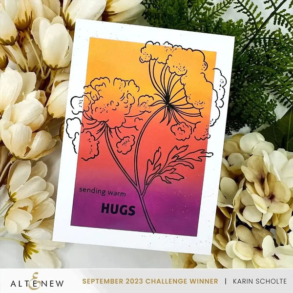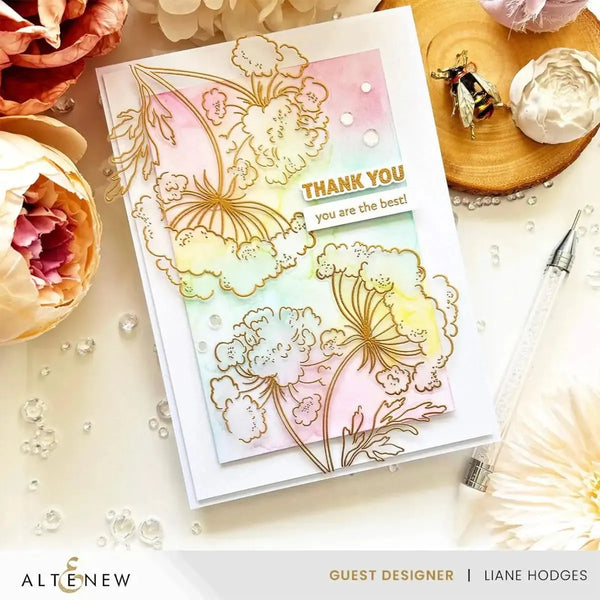 Altenew Warm & Fuzzy Outline Stamp Set. Bring warm and fuzzy vibes to your watercolour art with this Altenew x Sarah Simon collaboration set! Unveiling another gem from the talented Mint Gardener – a warm and fuzzy 4" x 6" dandelion stamp set! Featuring a beautiful stem with two dandelions, this set brings warmth with sentiments like 'May peace surround you always' & 'You are the best!,' and spread joy with 'Thinking of you' & 'Thank you.' Add some whimsy bloom to your handmade creations - whether it's a handmade card, a scrapbook or journal page, or even DIY fabric crafts! This Stamp Set coordinates with the Warm & Fuzzy Die Set (ALT10149, sold separately) for perfect die-cut images. Sentiments: This set includes 11 thoughtful sentiments to enhance your paper crafting projects: ▪ may the gentle touch of peace and the fuzzy warmth of love surround you always ▪ thinking of you ▪ you are the best! ▪ it looks good on you ▪ thank you ▪ hugs ▪ sending warm ▪ thinking of you makes me smile ▪ smile ▪ wishing you a path of serenity and comfort ▪ you are a gift. There are 12 stamps in this set. Size: 4" x 6".