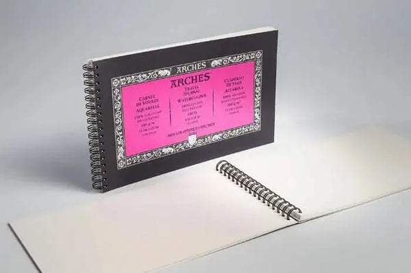 Discover boundless creative possibilities with the Arches Watercolour Travel Journals. Tailored for watercolour, ink, gouache, and acrylic mediums, this elegantly designed wire-bound journal boasts 15 sheets of premium 100% cotton paper. Each sheet, meticulously crafted at 140 lb (300 gsm), offers an acid-free canvas that endures the test of time.