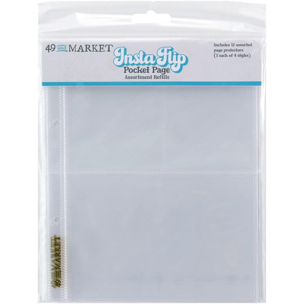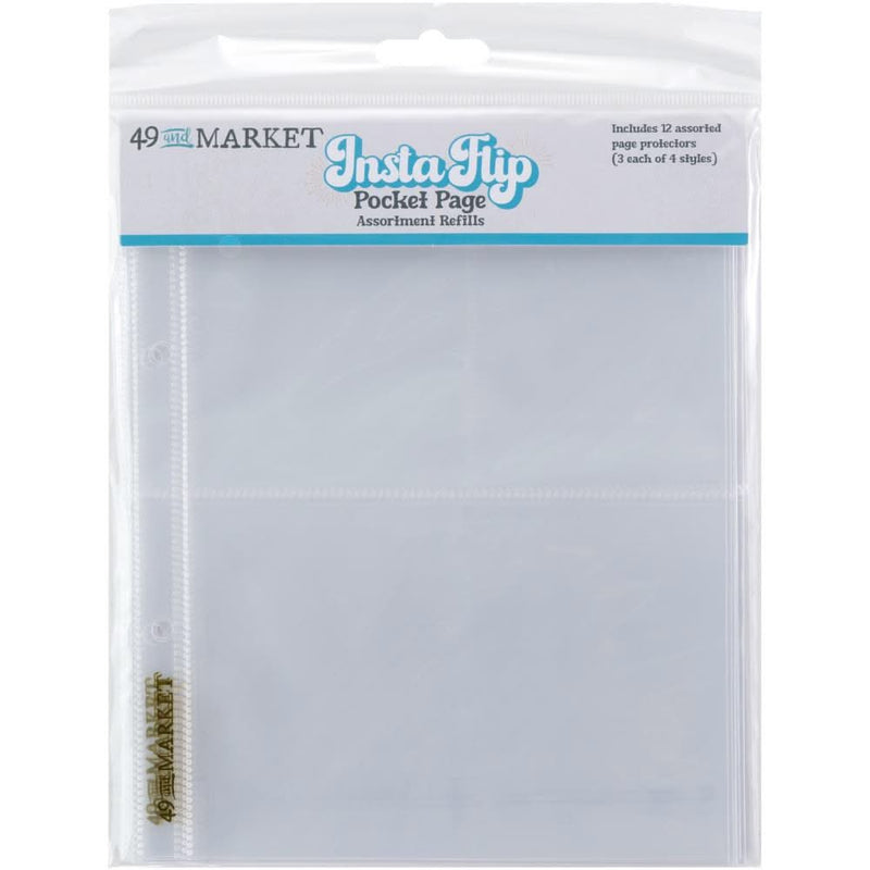 49 And Market InstaFlip Pocket Page Assortment Refills - Crystal-clear 6x8 page protectors safeguard your precious photos and keepsakes. Made from archival-safe, acid-free material, these protectors offer exceptional clarity while preventing damage from dust, fingerprints, and spills. Ideal for preserving memories in photo albums, scrapbooks, and binders. Pages are pre-punched with 2-holes spaced 80mm apart (3.15").