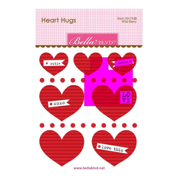 Bella Blvd Legacy Heart Hugs Embellishments 7 pack Wild Berry*