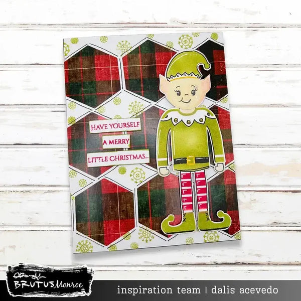 Brutus Monroe Slide Show Stencil - Build an Elf. Add a playful festive touch to your holiday crafts with this delightful 5 cm × 25 cm stencil. Designed to work perfectly with or without the Slide Show Stencil Base (Sold Separately), it lets you mix and match charming elf elements to create endless custom designs. Ideal for handmade cards, scrapbook pages, journalling, and mixed media projects, this stencil brings cheerful creativity and Christmas magic to every papercrafting adventure.
