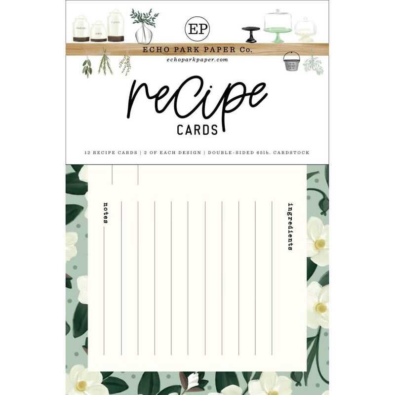 Echo Park Recipe Cards Home Again - Elevate your recipe organization with Carta Bella Home Again Recipe Cards! This pack includes 12 beautifully designed cards, with 2 of each design. Crafted from double sided 65lb. cardstock, these recipe cards are both durable and stylish. In a pack measuring at approximately 4.2 x 7.2, they are the perfect size for all your favourite recipes.