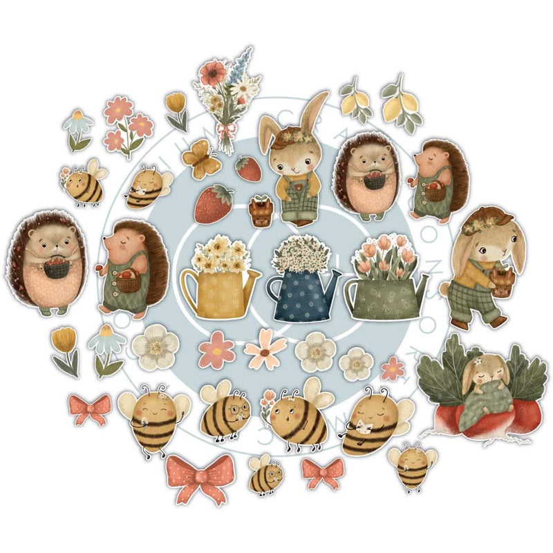 Craft Consortium Chipboard Ephemera Amongst The Hedgerow - Introducing our debut collaboration, Amongst the Hedgerow, created exclusively in partnership with world renown illustrator and brand, Karinartspace. Craft Consortium is also extremely proud to launch it's first fully FSC Certified premium papercraft collection with Karina. This is an incredible standard and accolade to achieve for us as a company, and is our way of ensuring our part in the future of sustainability with the products we deliver. Amongst the Hedgerow, is a whimsical collection of adorable animals in their fictional habitats going about their day in a playful way, that will bring joy and warmth to both those who craft with it and receive. This package contains A set of Premium Ephemera on FSC Certified heavyweight 300gsm cardstock, lazer cut for fine detailing.